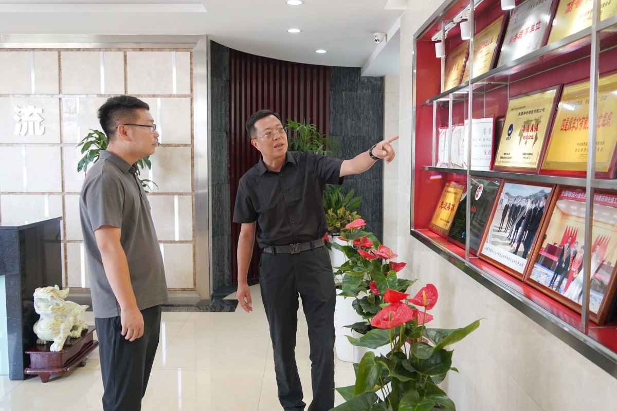 在园区参观环节,崔刚总经理向于总一行详细介绍了陕西祥云物流的业务板块、功能分区及特色运营模式,并陪同实地参观了园区中小企业服务中心、司机之家、四楼党建阵地及五楼祥云农谷农特产展示区。于总在深入了解公司整体规划布局与运营管理体系后,对陕西祥云物流在党建引领发展、精细化管理实施、营商环境优化等方面的创新实践给予高度评价。