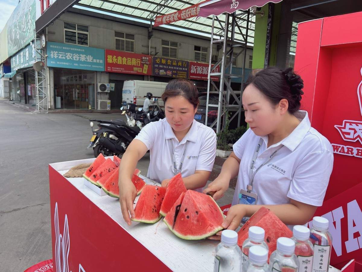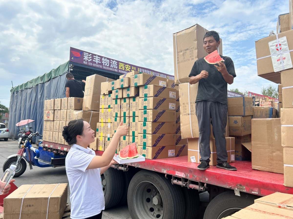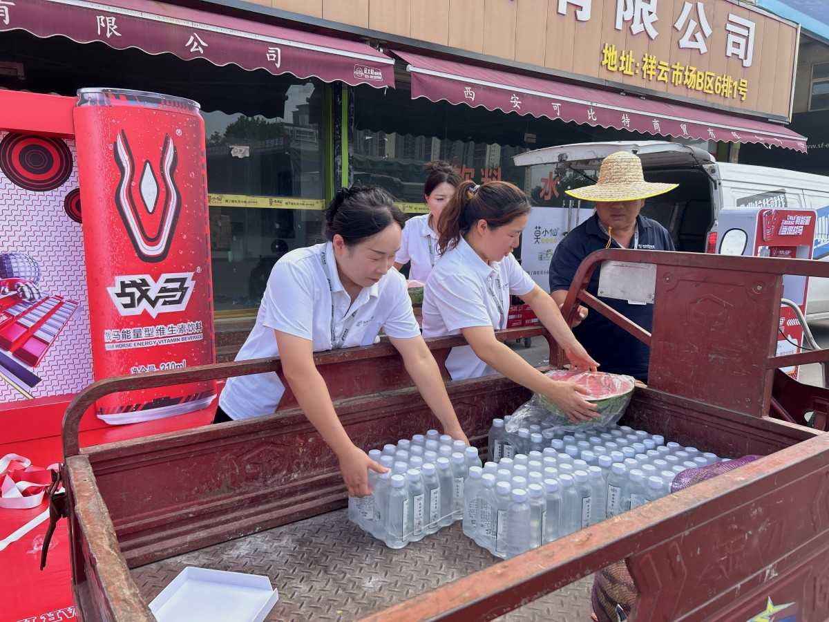 慰问组顶着烈日穿梭在园区中,将矿泉水、饱满多汁的西瓜以及红牛饮品送到商户、装卸工和各式车辆司机手中,他们脸上都露出了欣慰的笑容。“天这么热,干活一会儿就一身汗,园区送的水和西瓜太解渴了,还有红牛能提神,真是送到了我们心坎里,为祥云物流点赞!”一位正在卸货的工人擦着汗说道。这一份份承载着公司关爱的防暑降温物资,如同炎热中的“及时雨”,有效缓解了一线工作人员的暑热疲惫,更让大家深切感受到了公司的贴心守护。