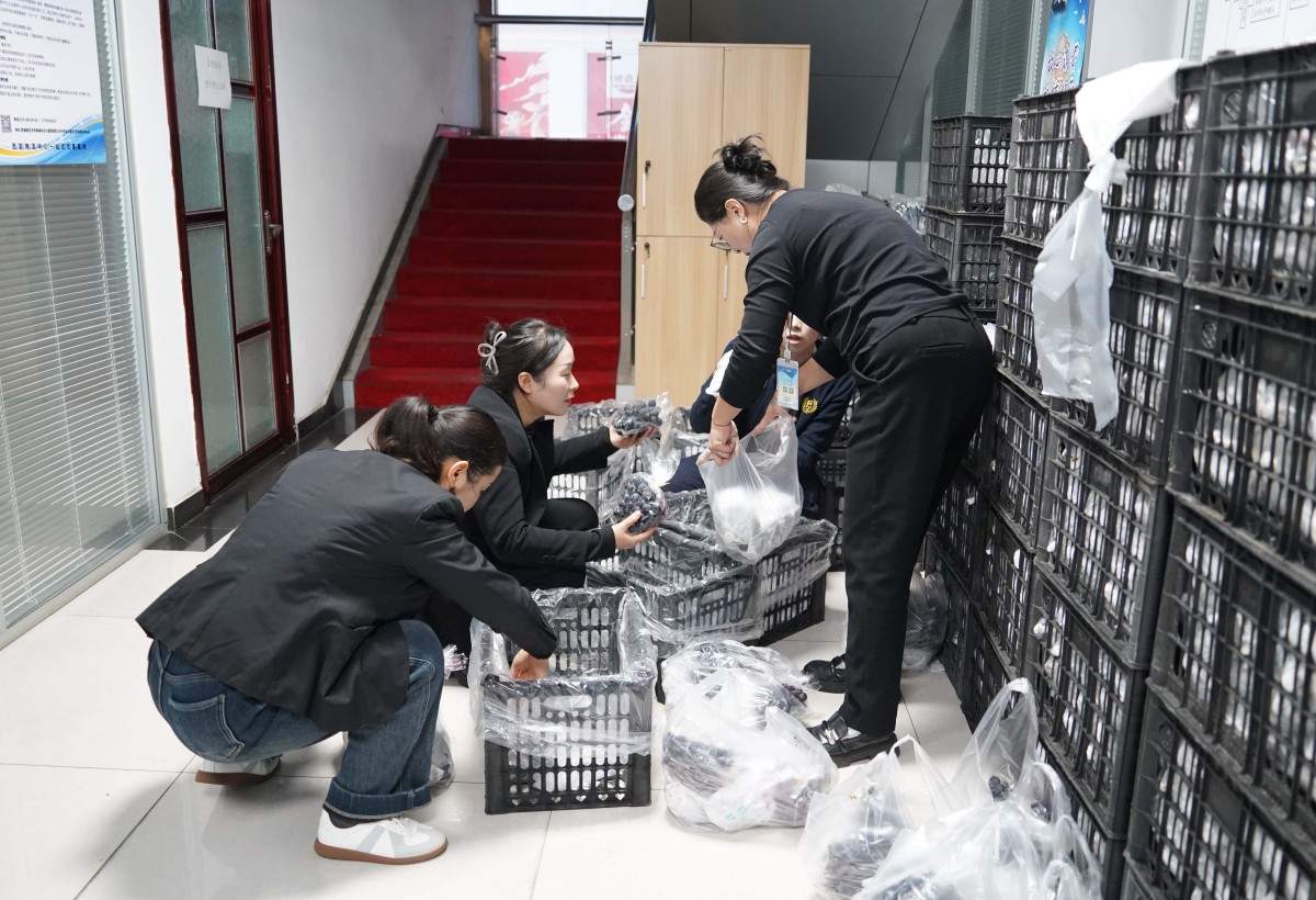 为确保活动顺利开展,中小企业服务中心提前联合多部门进行细致准备,从礼品数量统计、葡萄采摘、运输清点,到秩序维护、现场布置及发放流程设计,各个环节紧密衔接。橄榄园工作人员现场新鲜采摘,秩序保障部协力装卸搬运,中小企业服务中心负责分装、通知及引导登记,力求让每一份心意都能准确、有序地传递到商户手中。