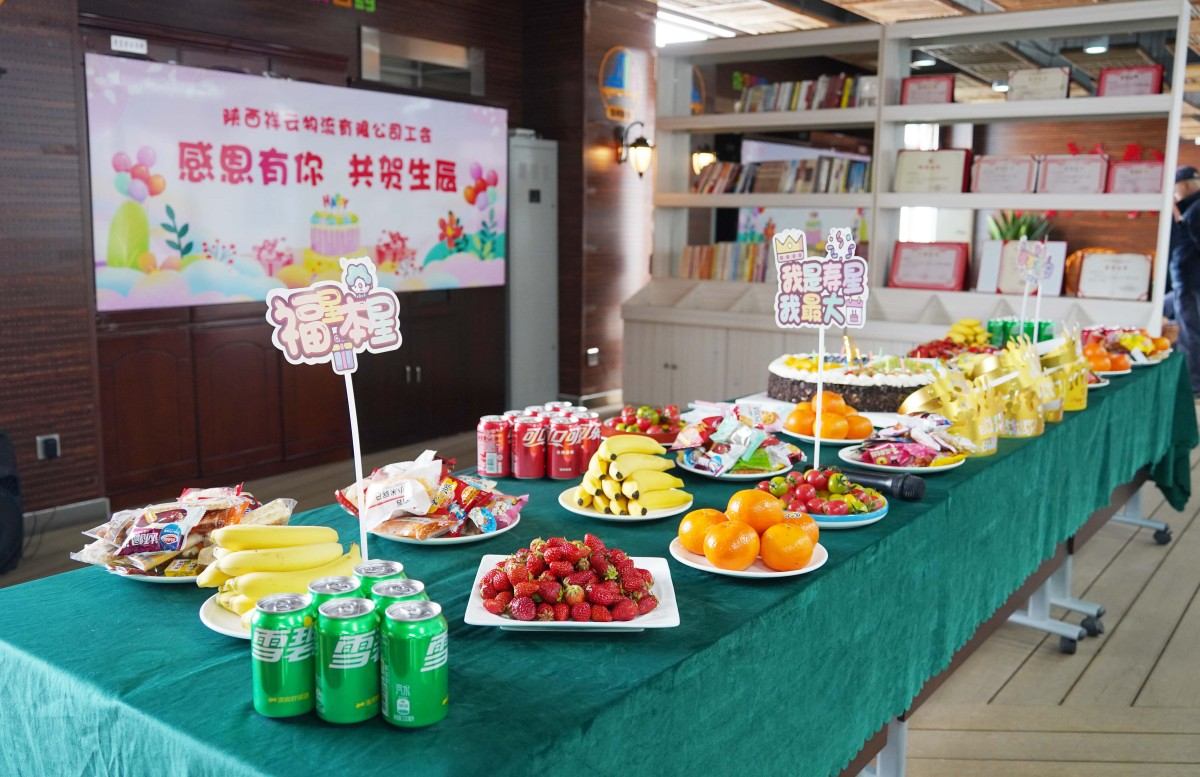 踏入生日会现场,精美的生日蛋糕、新鲜的水果、和美味的饮品,每一处细节都彰显着对员工的用心与关怀。大家在欢声笑语中,卸下工作的疲惫,共享这份属于生日的甜蜜时光。